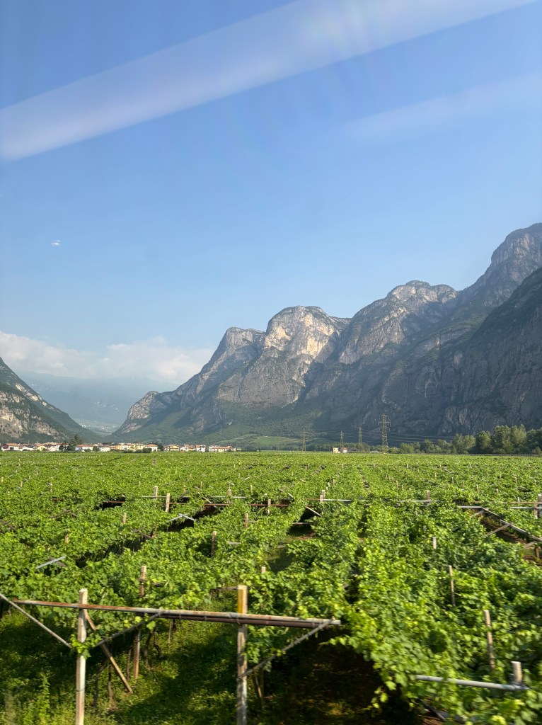 Although there are many destinations in the Italian Alps, my travels took me to Val Di Sole. Here you’ll find a beautiful mountainous region filled with authentic Italian culture. The valley is spotted with remote towns of no more than a few hundred residents each and only a 2-3 minute drive in between each one. Although there are roads parallel to the train and well maintained for a car, I’d suggest the train for the views and relaxation. It’s a smaller train than what runs through most of the countryside in Italy and the southern-most station is in Trento. I took a train from Trento to Dimaro for €4.70, which is a great price for a journey of 2.5 hours. Each town is slightly different from one another. I’m told that there’s a different dialect and history that separates each one, even though they’re so close together. Where there aren’t towns, there’s apple orchards and beautiful trees. Last night I saw fireflies for the first time in almost 6-7 years now!